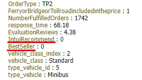 The new variables Best Seller and Intui Recommend are displayed in RS using the method GetAvailCars of searching for transfer offers along the route.