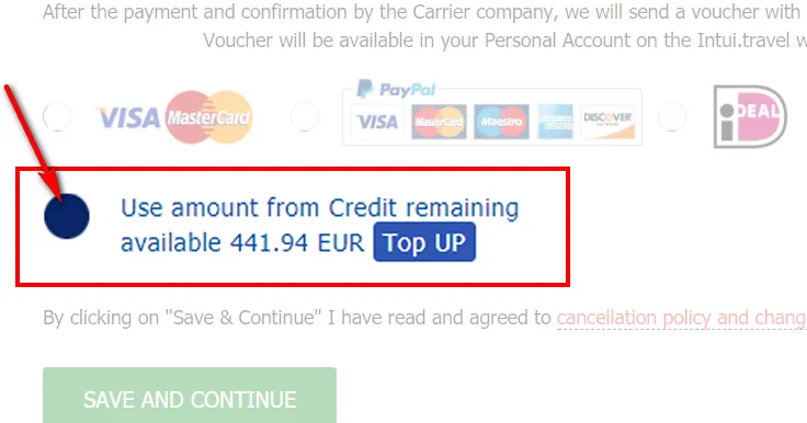 And choose the balance credit payment method: