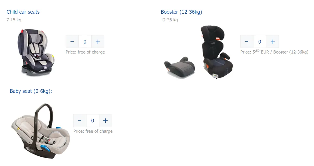 It is worth noting that not every country has a requirement to transport children only in special restraints. In this case, the transport company will provide child seats only upon your request. There are two ways to add the desired child seat: