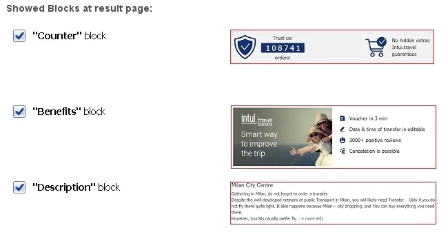 You can configure additional elements / blocks to show or not to show them on content pages, airport or on Search results pages. And here are the blocks that are available for configuration: