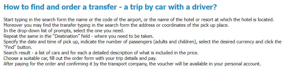 A list of the most popular questions from our users in order to immediately understand what needs to be done to find and book a transfer service and what to expect from the service.