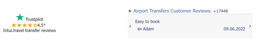Trust and reliability with a high company rating on Trustpilot and real reviews about the service from tourists and partners.