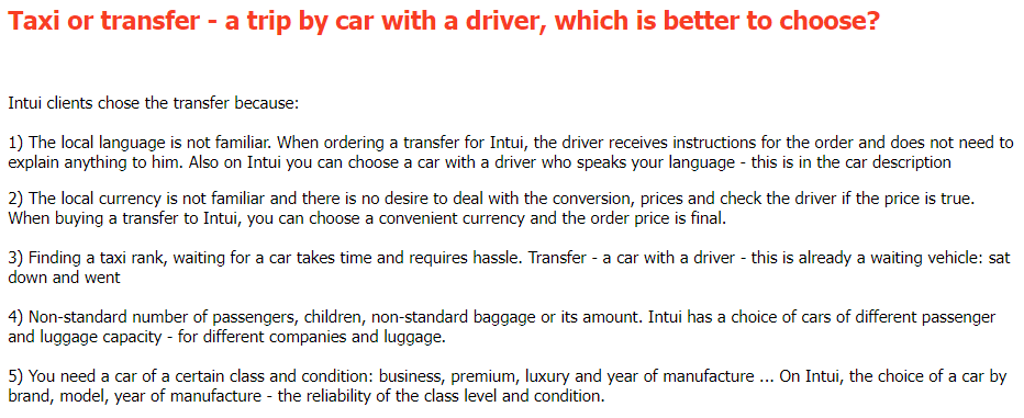 In this block, your user will find out the total product coverage numbers, and the competitive advantage of “cancellation from 1 hour before the trip”.