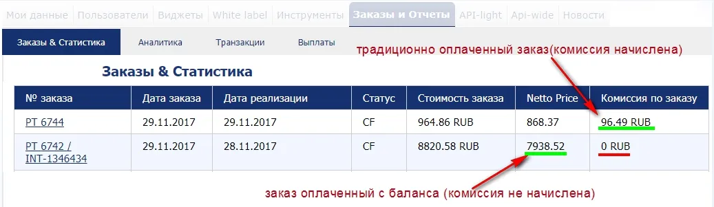 Комиссия по такому заказу начислена не будет, потому что размер комиссии с такого заказа уже вычтен. Информация по нетто цене заказа доступна непосредственно перед оплатой (см.ниже)