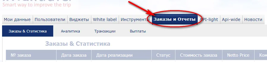 В разделе заказы и статистика отражены все заказы сделанные агентом и выплаты по ним. Здесь вы можете отслеживать какие бронированию были оплачены с баланса, а какие традиционно и размер начисленной комиссии.