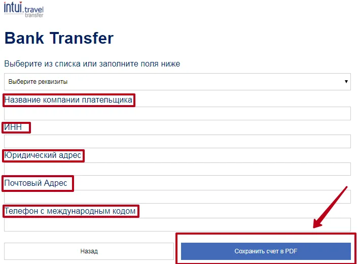 2. Заполните данные которые будут в форме и сохраните счет в PDF формате: