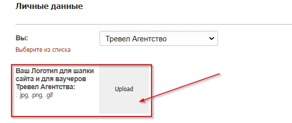 2. Загрузите логотип в формате jpg, png, gif. форматы в поле, как на изображении ниже