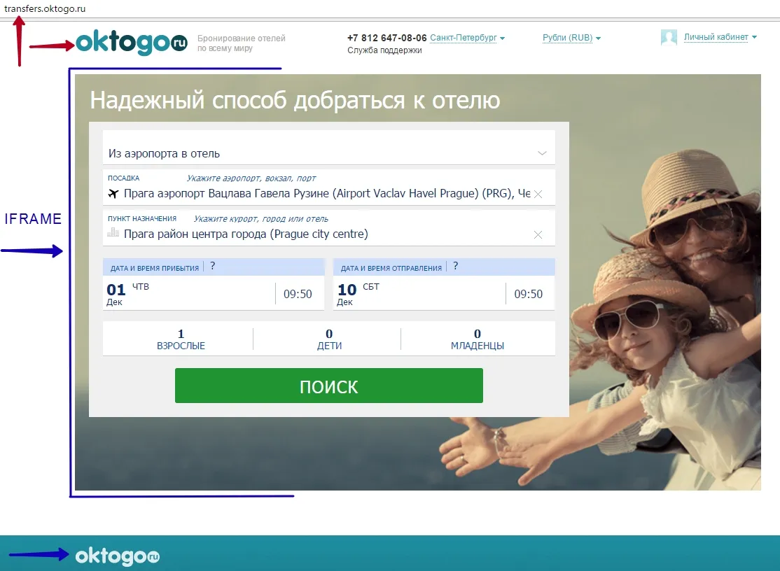 Под вашим логотипом бронируют ваши клиенты трансферы Intui travel: White Label - шапка и подвал вашего сайта от поиска до оплаты