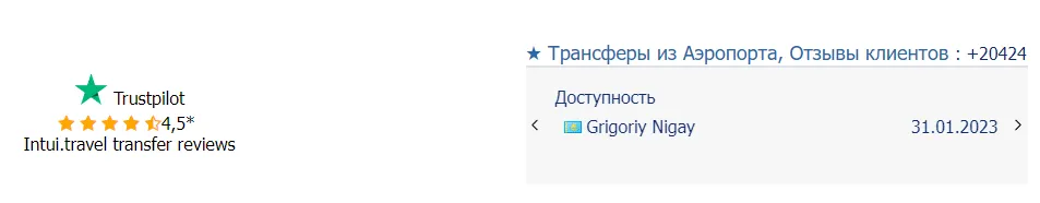 Доверие и надежность с высоким рейтингом компании на Trustpilot и реальными отзывами о сервисе от туристов и партнеров.