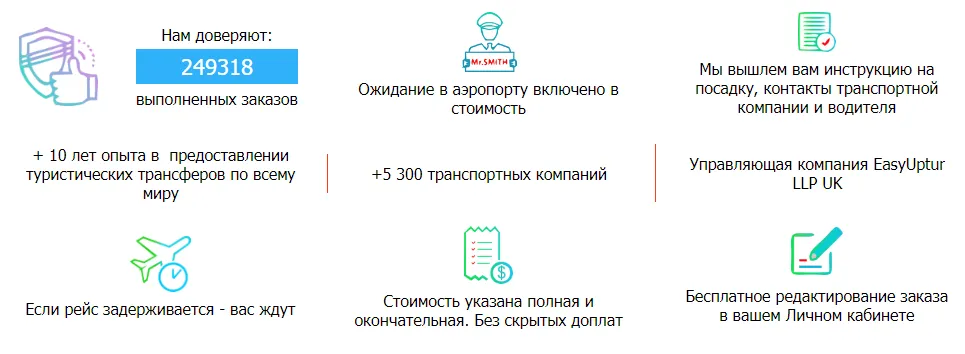 Опыт компании на рынке, ожидание при задержке рейса и четкие инструкции для поездки = надежность и доверие!
