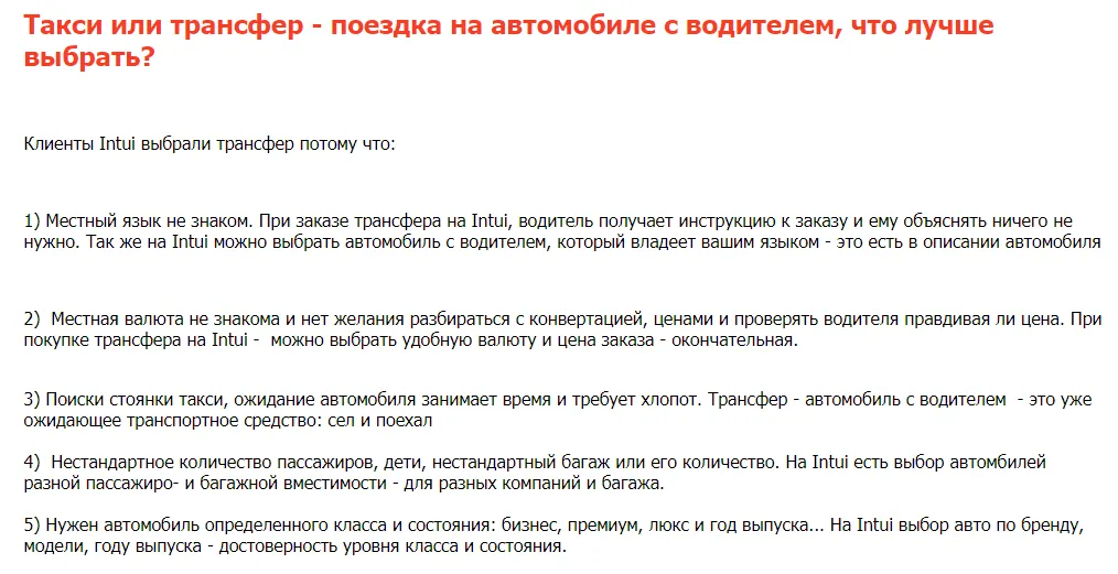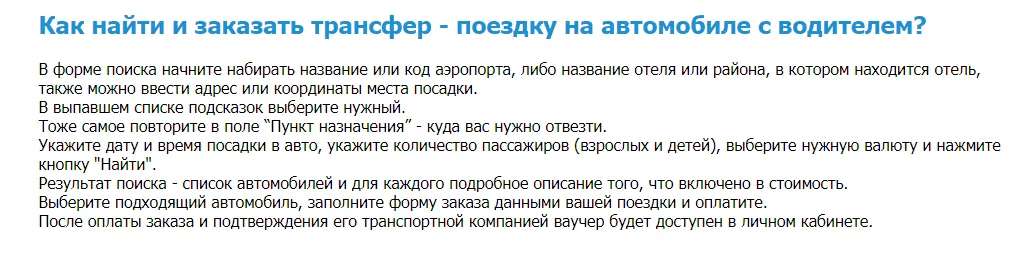 Общая информация о бронировании трансфера онлайн с важными тезисами для туриста.
