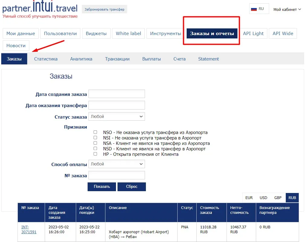Для этого зайдите в свой Личный кабинет/ Вкладка Мои Заказы https://partner.intui.travel/ru/orders/